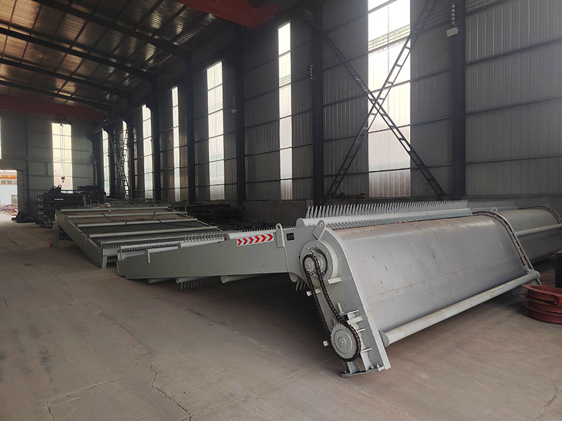 清除附着在拦污栅上杂物(一般称污物)的机械设备。在污物较多的水库或河道上,为保证水电站或泵站得以安全、正常地运行,常需设置清污机,以便在不?;筒环趴账獾奶跫陆星逦邸? 回转齿耙式清污机一般与拦污栅做成整体,动力装置分为液压马达驱动和电动机驱动,回转齿耙式清污机的清污刮板传动装置宜采用回转式输送链。